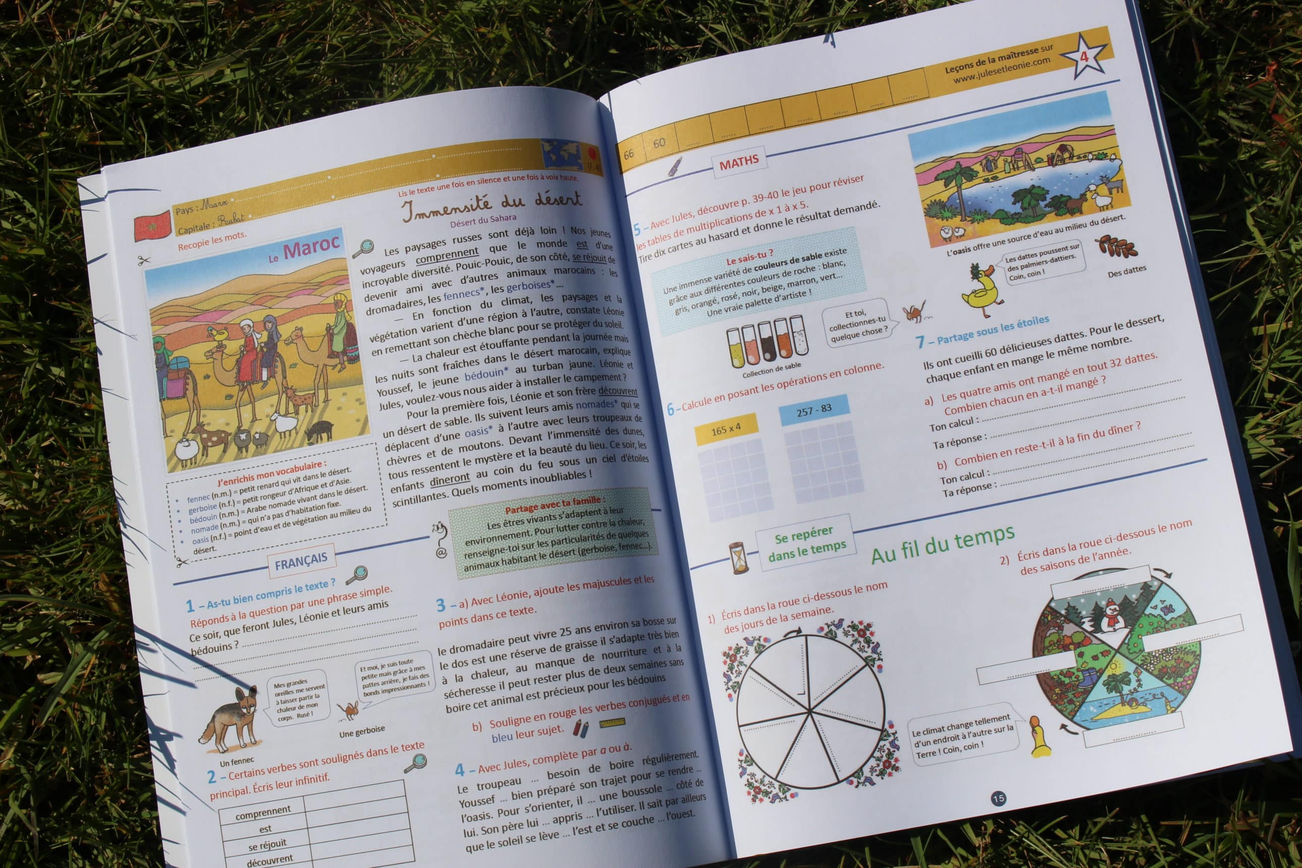 Le nouveau cahier CE1/CE2 entraîne les enfants dans un voyage autour de notre belle Terre. Le but de ce cahier (outre les révisions scolaires) est de sensibiliser l’enfant à l’émerveillement sur la planète et ses habitants.