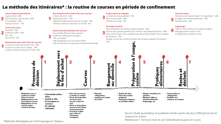 Cet article s’appuie sur les données récoltées via une enquête quantitative en ligne, menée auprès d’un échantillon de 6000 personnes représentatif de la population de France et de Suisse, âgée de 18 à 70 ans établi sur la base de quotas sur les critères suivants : âge, sexe, catégorie socioprofessionnelle, région et taille de l’agglomération de résidence ; et sur une étude qualitative en cours, menée auprès d’un échantillon de 60 individus. Le confinement