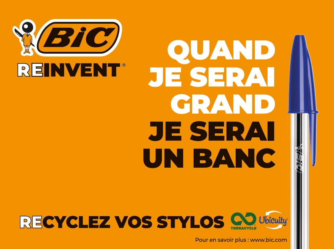 L’exemple de BIC est très intéressant : c’est une des marques qui dépose le plus de brevets et qui fait le plus de recherche pour la recyclabilité du plastique et pour diminuer sa quantité dans les produits ainsi que pousser la durabilité par le recyclage…Cela ne date pas d’hier mais la marque n’avait pas senti l’enjeu d’en faire un levier de communication. La dureté de l’époque sur le recyclage et notamment sur le plastique a poussé BIC à s’emparer du sujet avec en ce moment comme vous avez pu le voir sur les murs de vos villes ou dans les magasins « Quand je serai grand je serai un banc » la nouvelle campagne de la marque avec ses 3 R RECYCLER, RECHARGER, RÉDUIRE. C’est vrai sincère et prouvé.